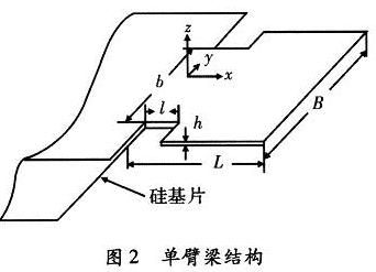 Aasys是一个可在微机上使用的综合性有限元软件,是微机电系统设计中广泛使用的有限元分析软件。通过有限元的分析计算可以预测悬臂梁上引力分布、固有频率、可测最大加速度等,进而指导梁结构参数的选取。经过对梁结构有限元的计算分析选取单臂梁、双臂梁结构参数,如表1所示。